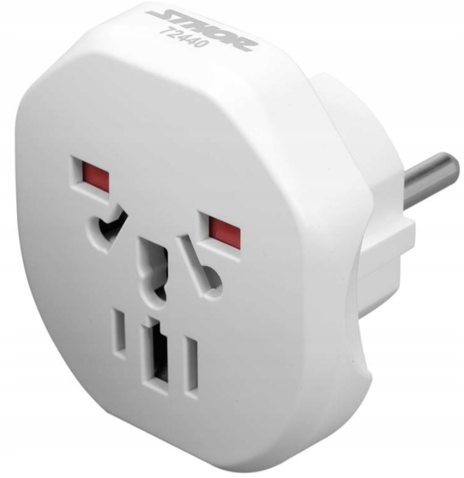 Adapter podróżny marki STHOR typ Świat - Europa z uziemieniem. Uniwersalne gniazdko z wbudowanym zabezpieczeniem przed dziećmi umożliwi podłączenie urządzeń z ponad 150 krajów całego świata. Wtyczka typ E&F pasuje do większości gniazdek w Europie*. Obudowa wykonana z wytrzymałego tworzywa sztucznego o zmniejszonej palności.