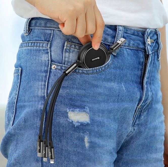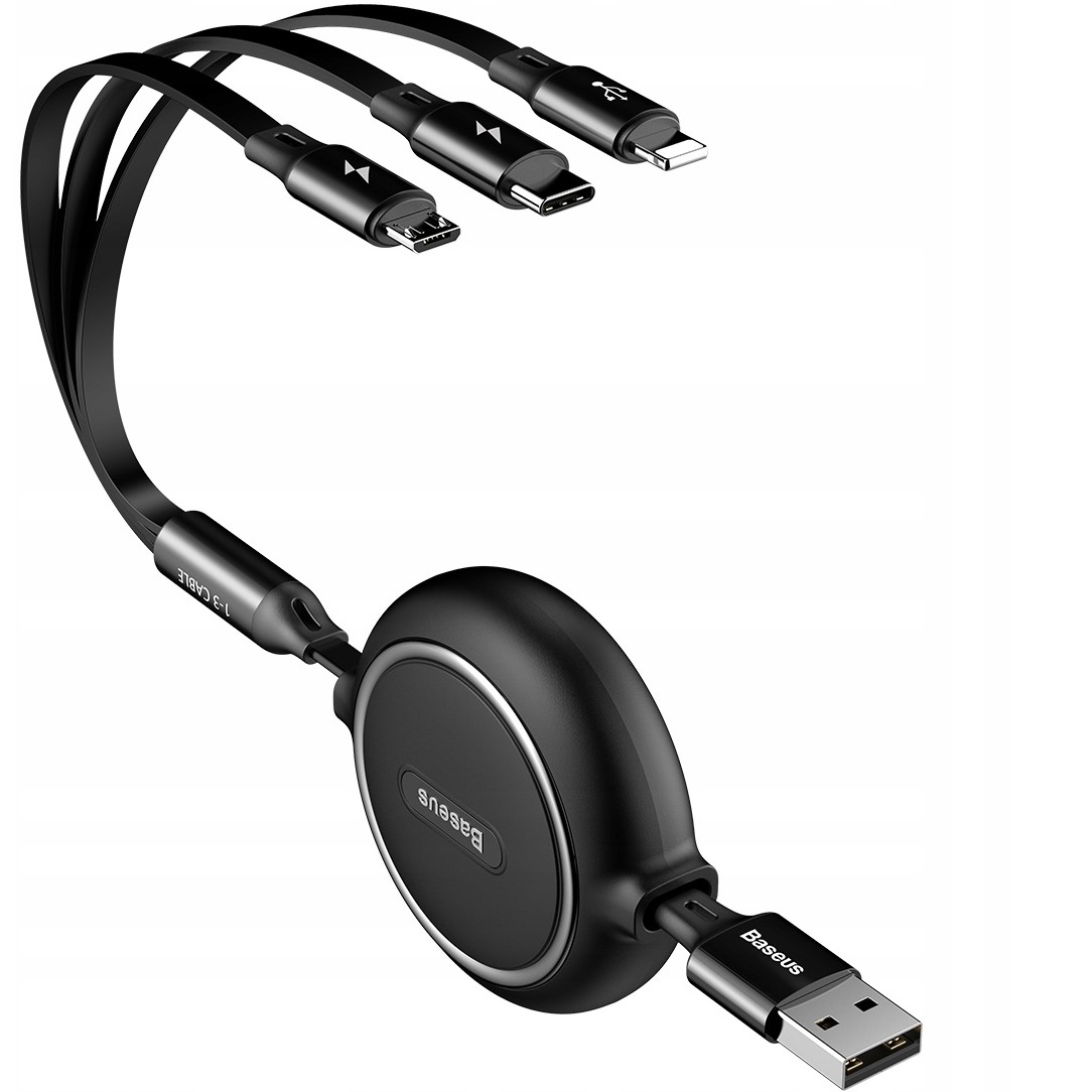 Baseus Kabel 3w1 USB - Lightning Micro USB USB-C z regulacją długości