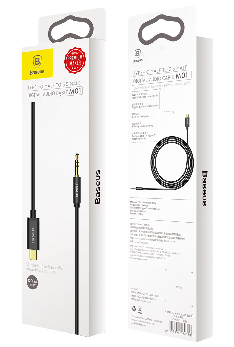 BASEUS KABEL USB-C TYPE-C AUX MINI JACK 3.5MM WTYK PRZEWÓD AUDIO 1.2M 120CM