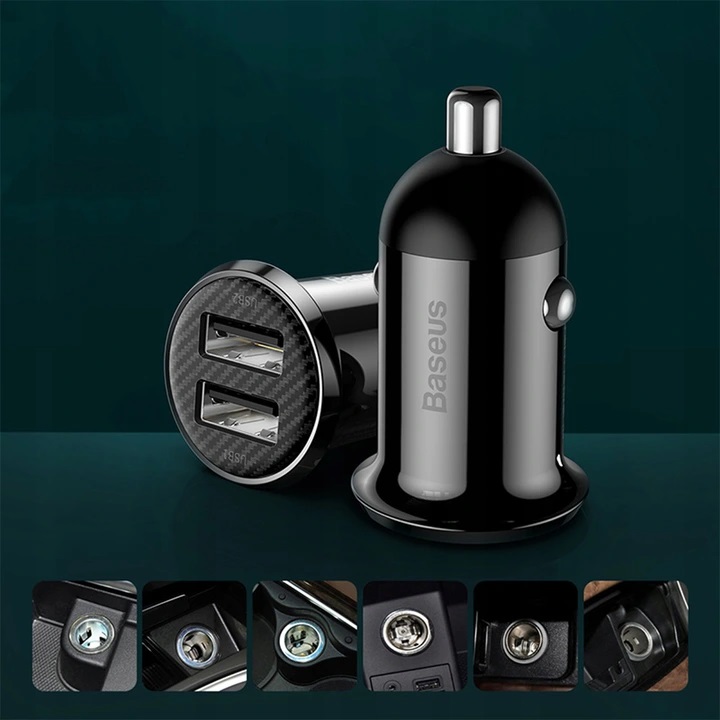 BASEUS SZYBKA MOCNA ŁADOWARKA SAMOCHODOWA DO TELEFONU 2x USB 4.8A 12-24V