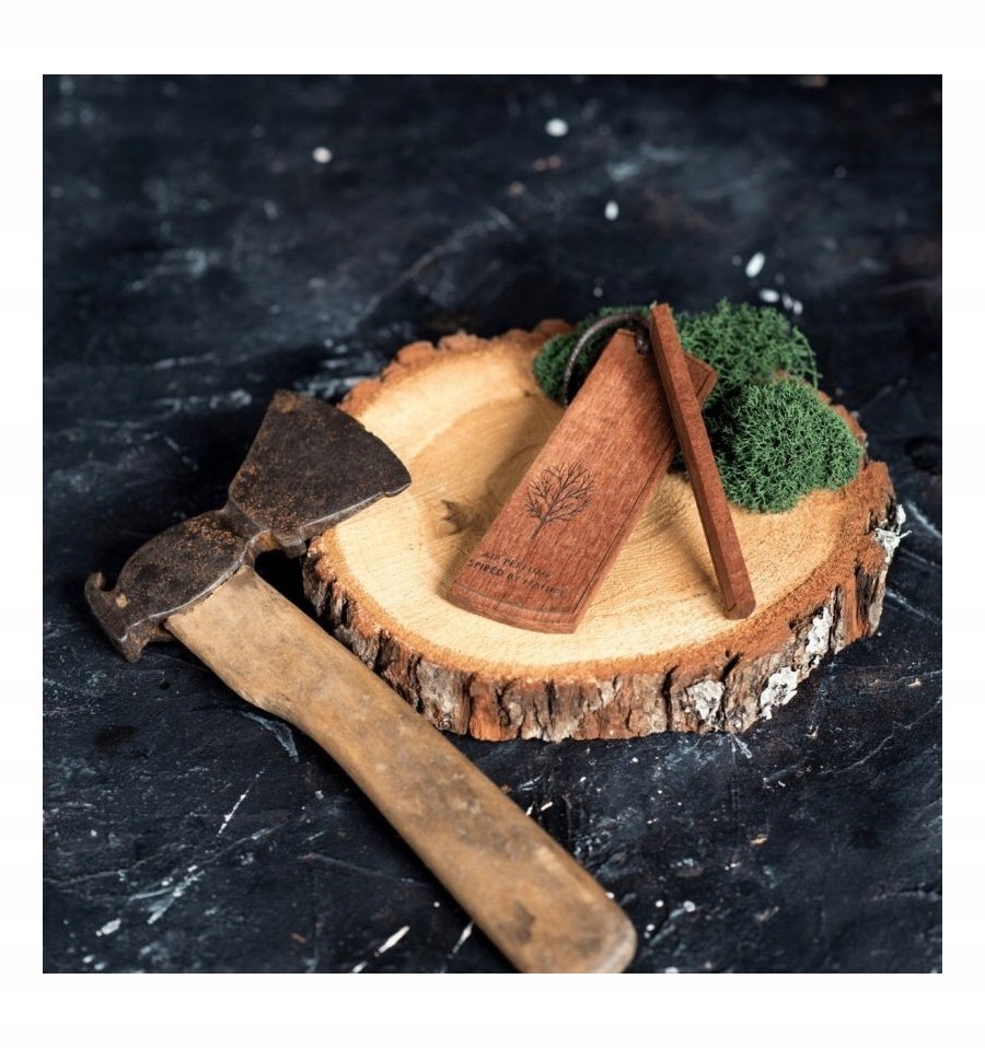 Zawieszka wykonana z litego drewna z dwustronnym grawerem, nadaje wnętrzu klasy niczym zapachowa biżuteria.