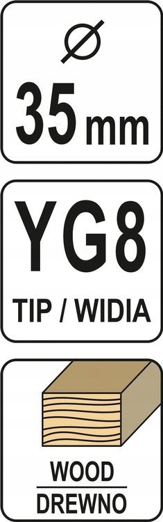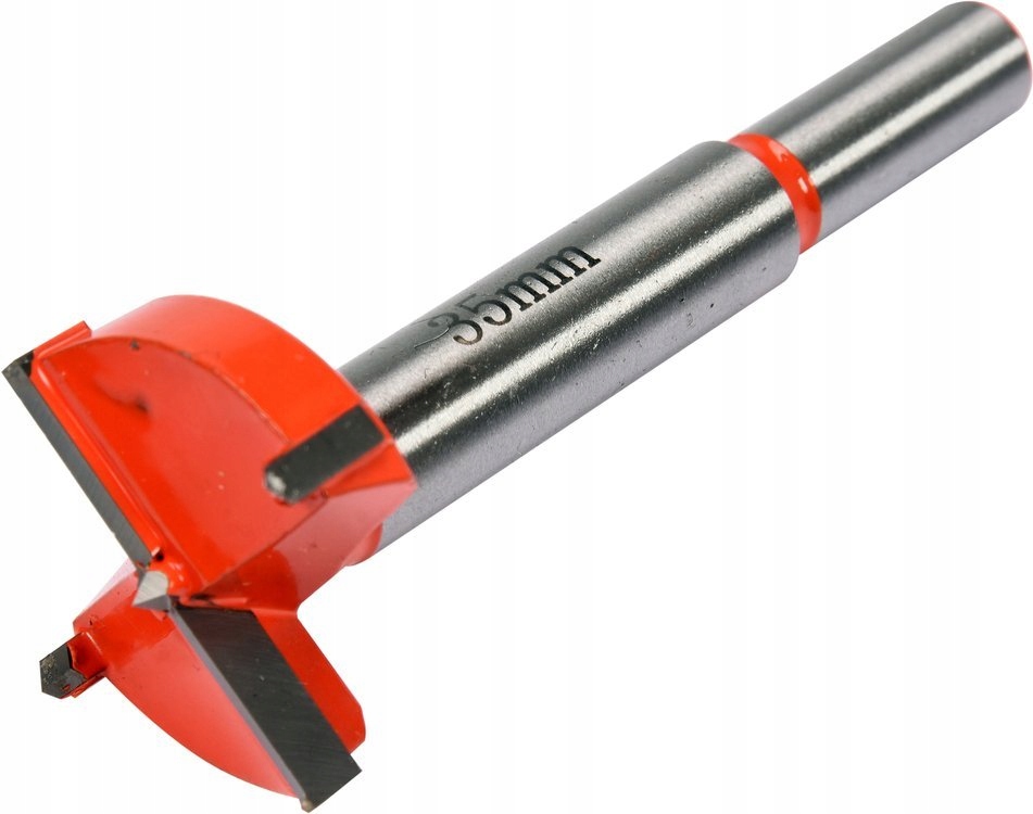 Wiertło do drewna pod zawiasy 35mm. Przeznaczone do wiercenia precyzyjnych otworów bez szarpania krawędzi w miękkim drewnie, sklejce, tworzywach sztucznych.