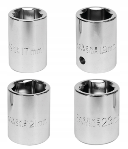 Zawartość zestawu: klucz udarowy, nasadka udarowa x4 (17 mm, 19 mm, 21 mm, 23 mm)
