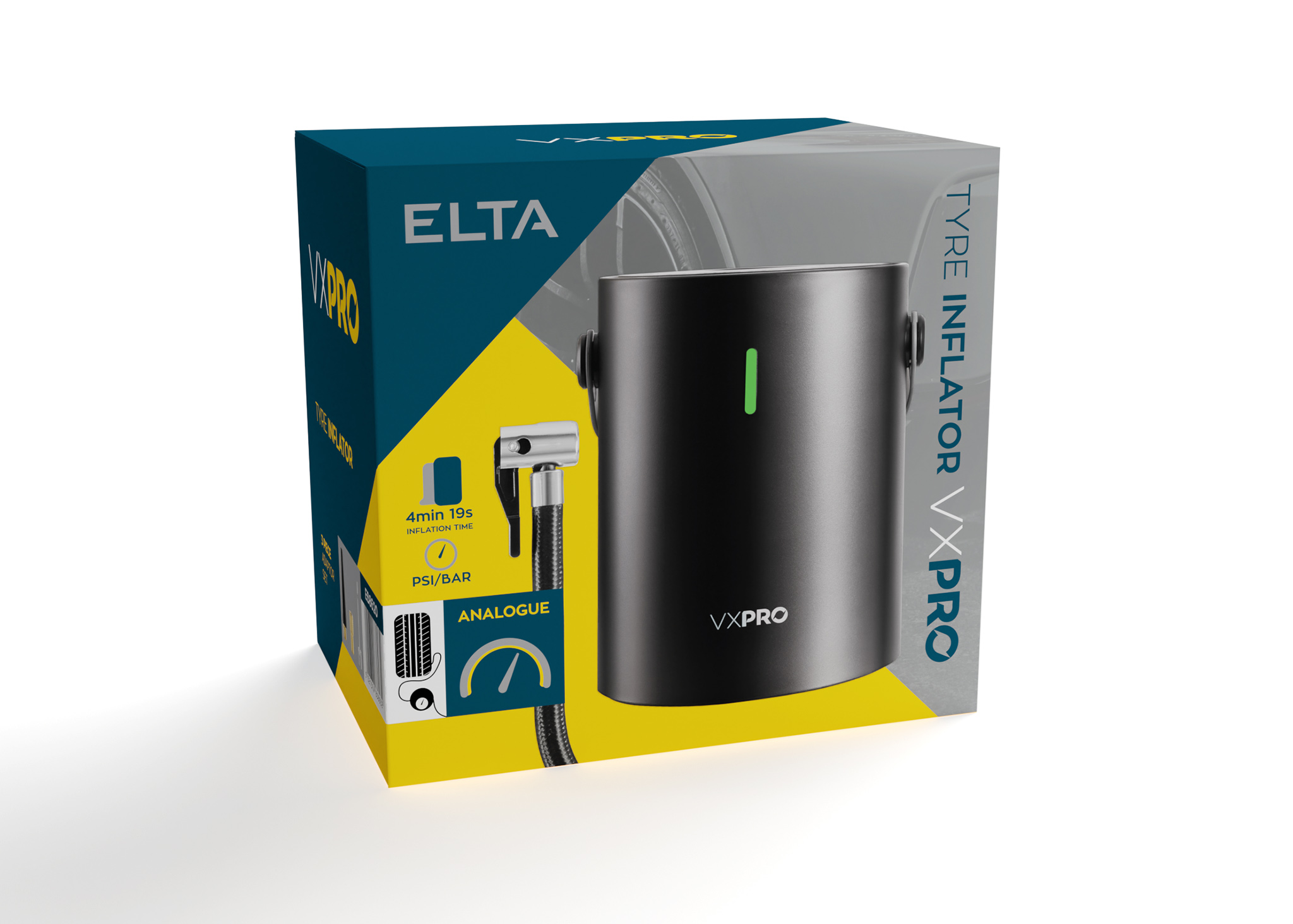 Elegancki design, kompaktowe wymiary, pompuje oponę w zaledwie 5 minut.