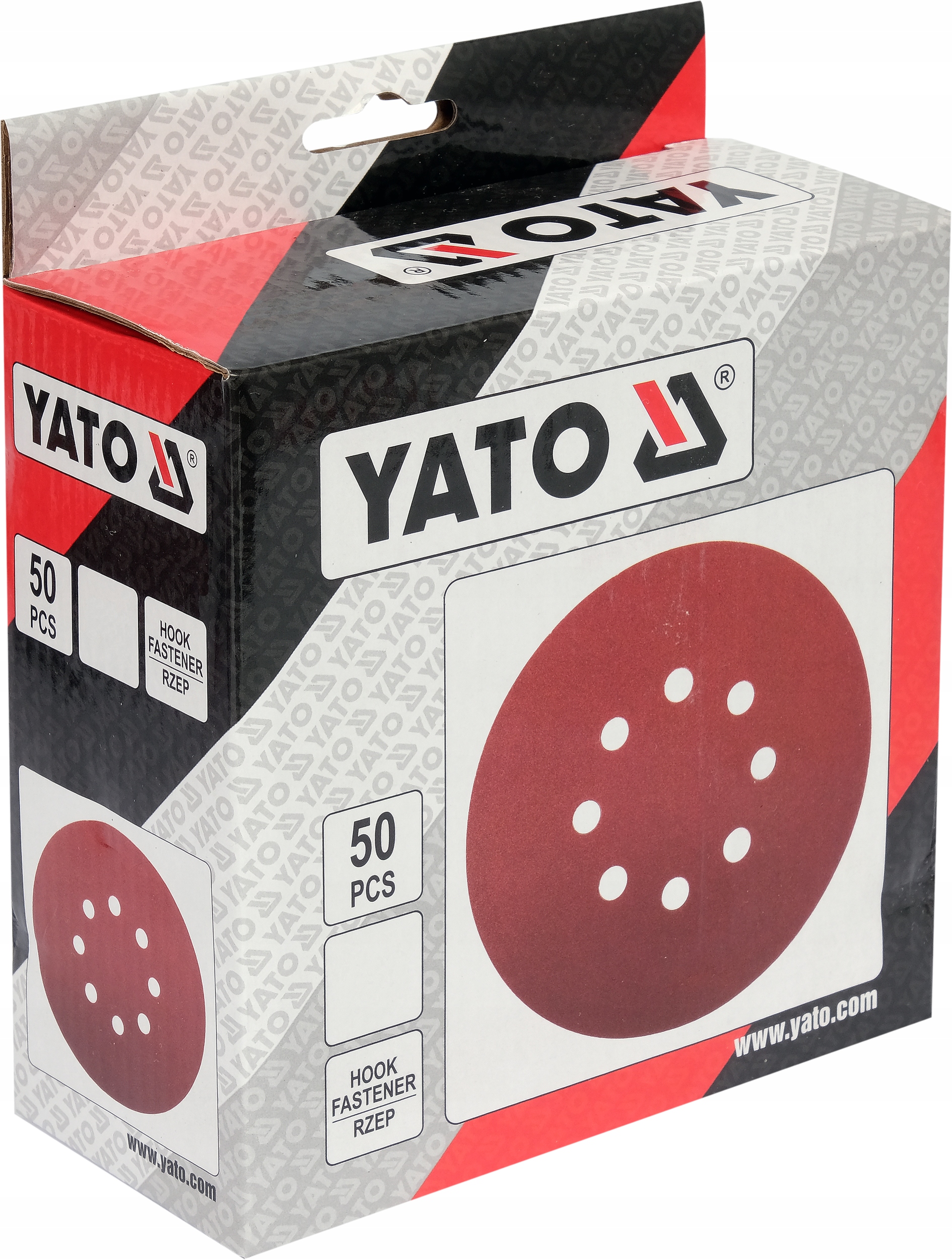 Krążki ścierne na rzep 8 otworów o średnicy 150mm, gradacja P240, 50 sztuk YATO.