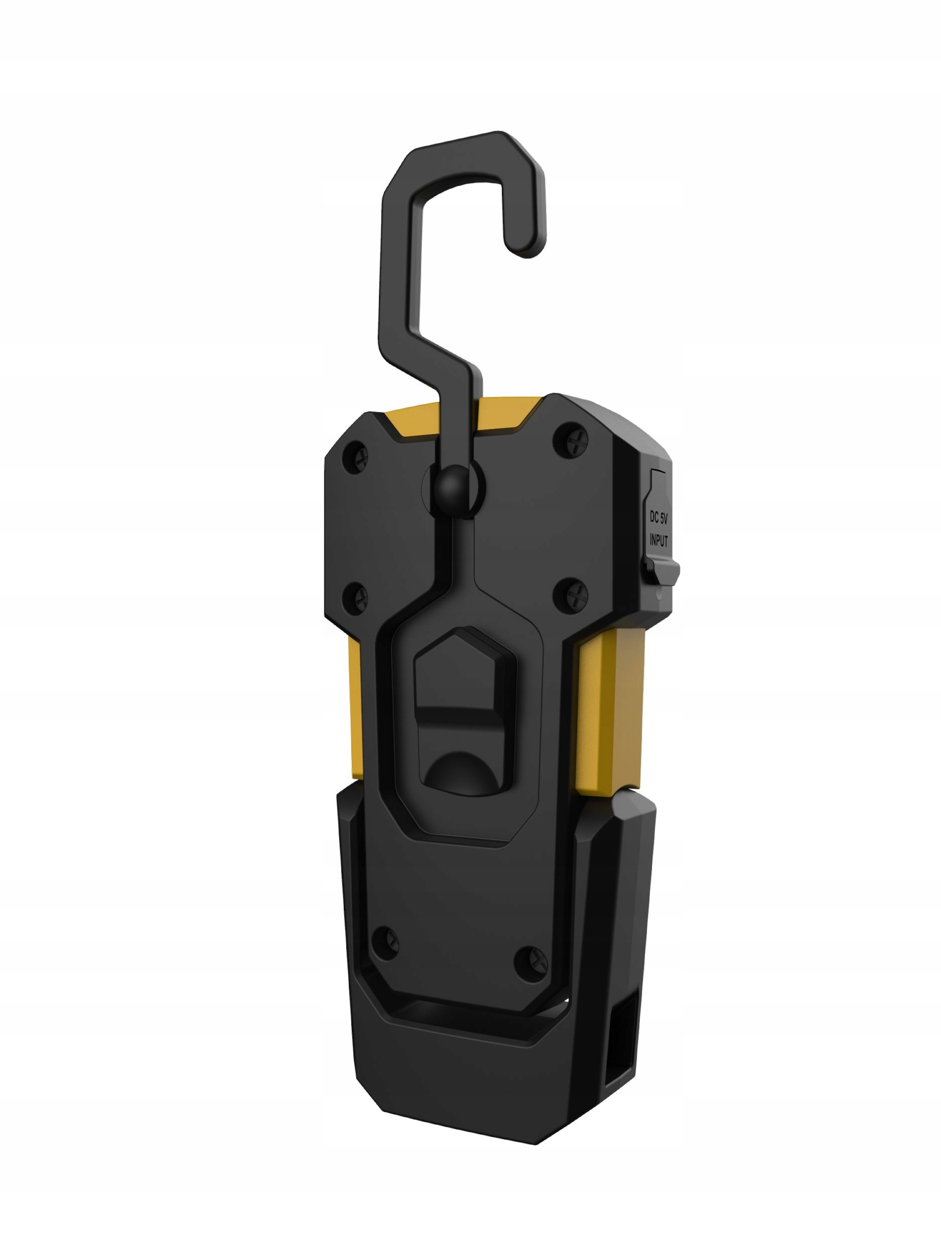 Latarka posiada otwierany hak dzięki czemu możesz ją również powiesić. Dodatkowo w obudowie znajdują się dwa uchwyty magnetyczne.