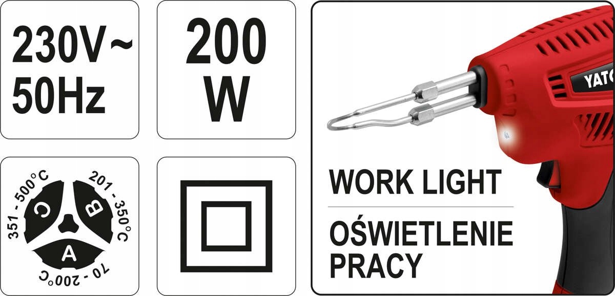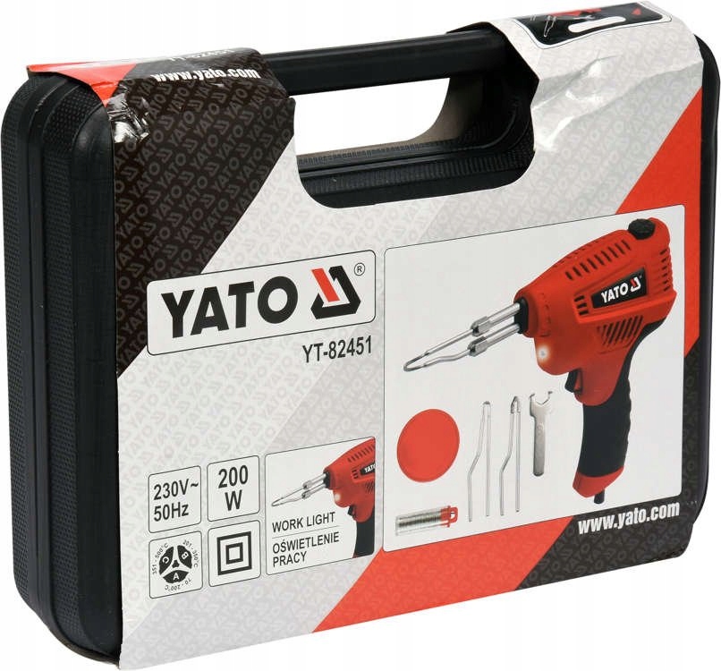 Lutownica transformatorowa marki YATO. Wyróżnia się błyskawicznie nagrzewającym grotem.