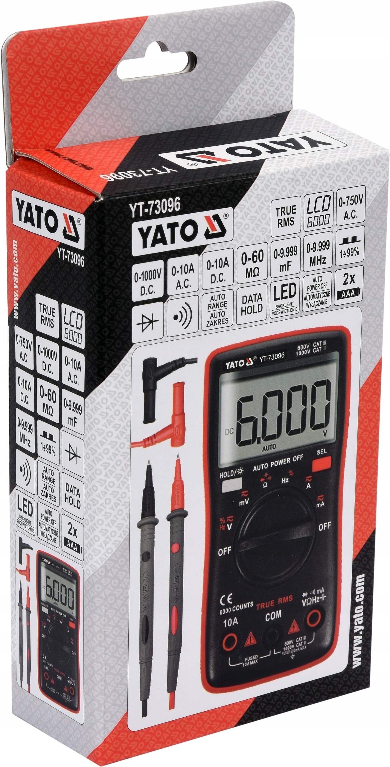 Miernik uniwersalny YT-73096 z funkcją TRUE RMS oraz z automatycznym zakresem dla każdego pomiaru. Umożliwia wykonanie podstawowych oraz zaawansowanych pomiarów wielkości elektrycznych. Popularna obudowa, niewielkie wymiary oraz duży podświetlany wyświetlacz to połączenie wysokiej mobilności z wygodą pracy. Szybkość, dokładność i powtarzalność wskazań multimetr zawdzięcza nowoczesnej konstrukcji płytki sterującej oraz wysokiej jakości sondom pomiarowym, których rozmiar i precyzję docenią zarówno hobbiści jak i profesjonalni serwisanci.
