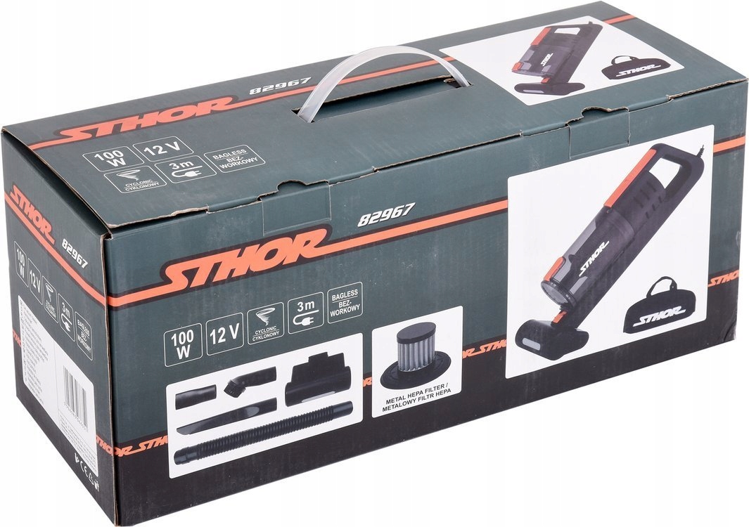 - Odkurzacz 100W z filtrem HEPA i przewodem 3m