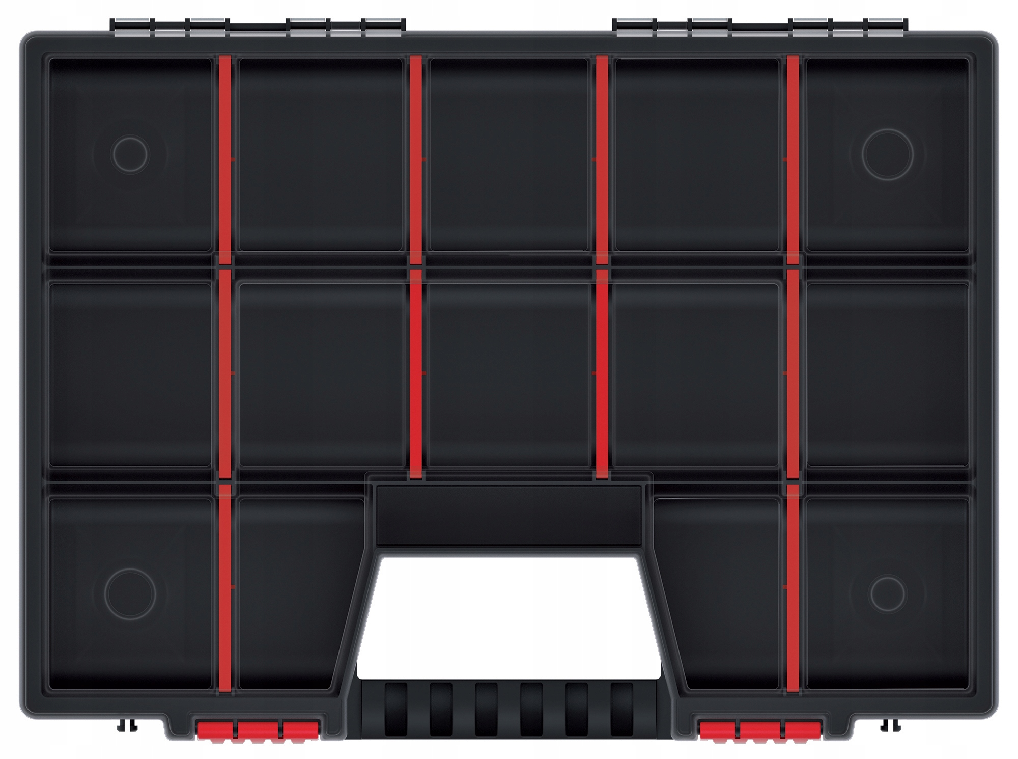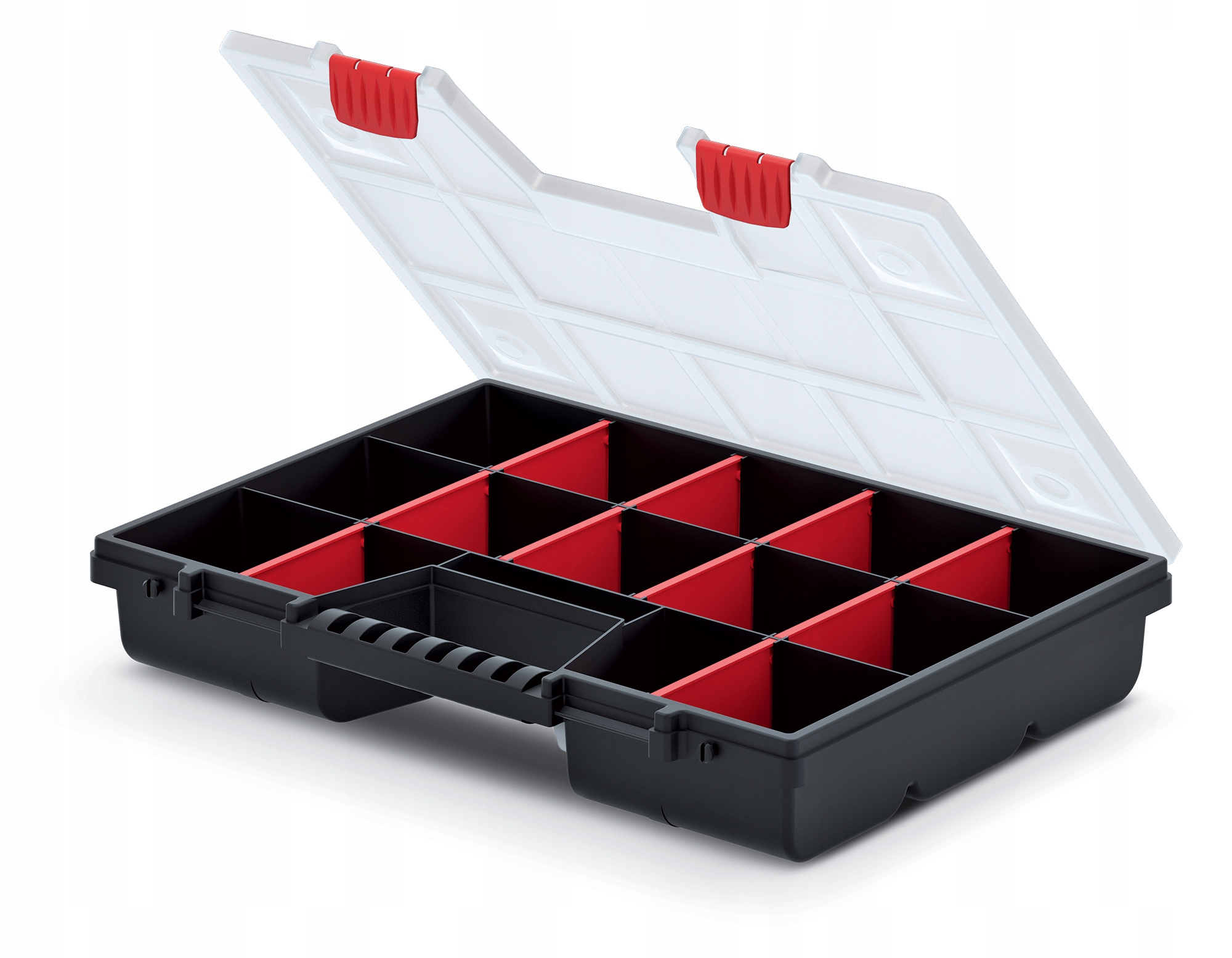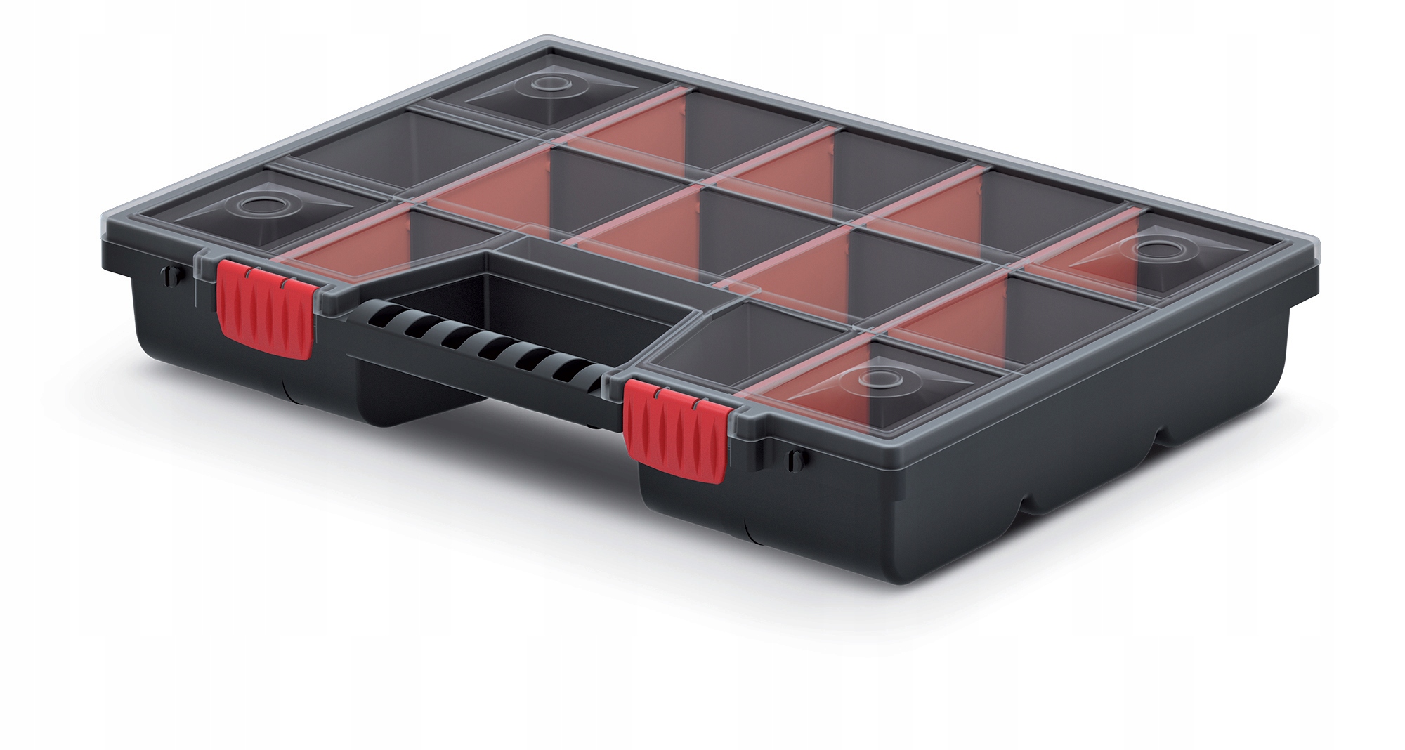 Technologia zamknięcia sprawia, że włożony asortyment do wewnątrz, nawet w przypadku ułożenia organizera spodem do góry nie miesza się.