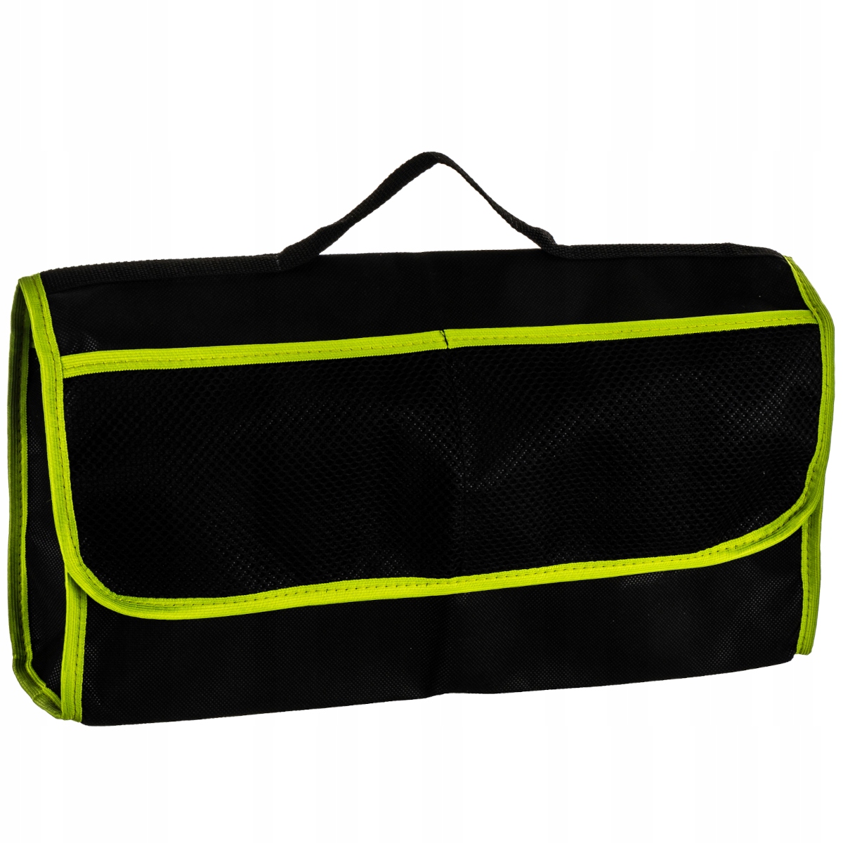 Organizer został wykonany z trwałego materiału, wyposażony w dużą komorę, kieszenie z elastycznej siatki na pokrywie oraz rączkę do łatwego przenoszenia.