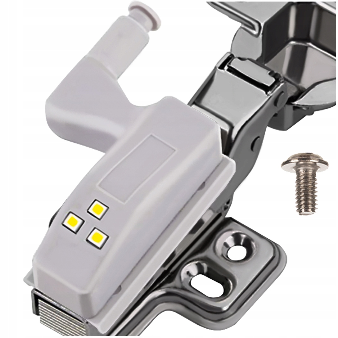 - PRAKTYCZNA – prezentowana lampka 3 LED do szafki na zawias to akcesorium, które rozwiąże problem z brakiem światła po otwarciu drzwi do szafki. Dzięki niej za każdym razem będziesz miał tak potrzebne podczas otwierania drzwi światło, które doskonale oświetli każdy ciemny zakamarek szafki.