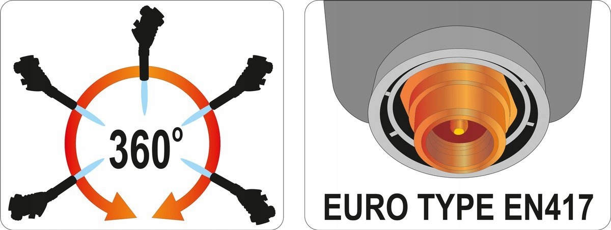 Palnik może być używany z pojemnikami jednorazowego użytku, wyposażonymi w samouszczelniające złącze gwintowe, zgodne z normą EN 417.