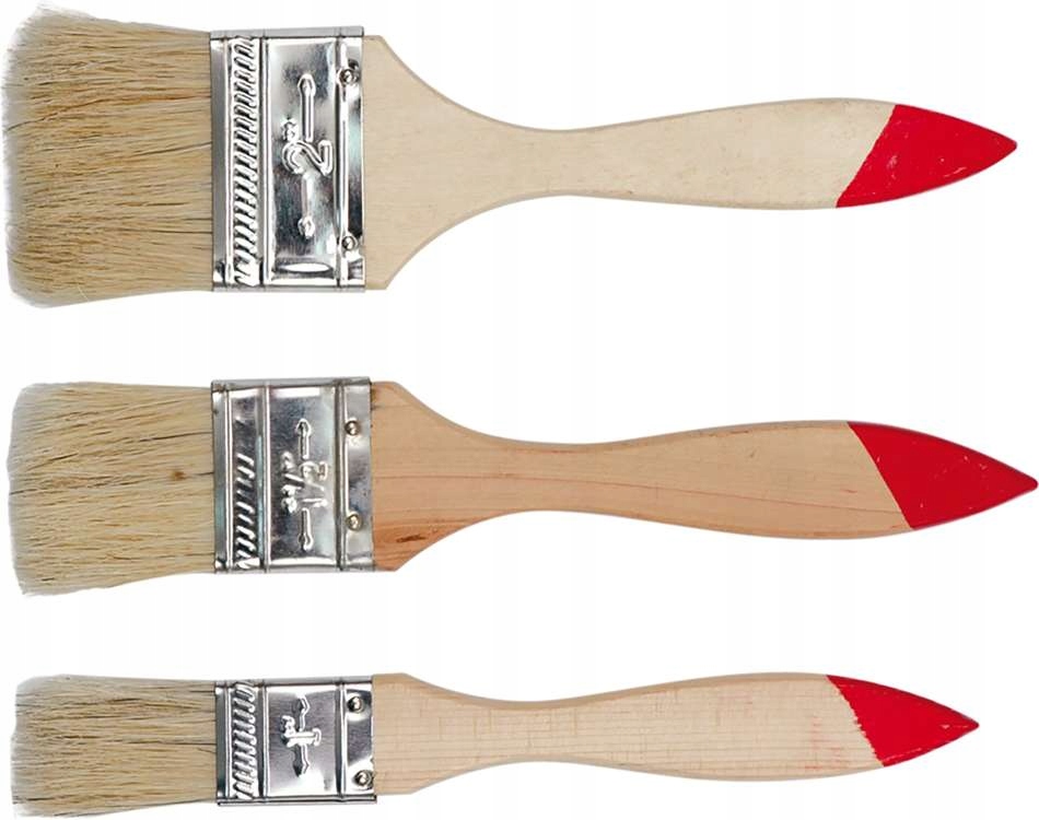 - Zestaw trzech pędzli płaskich typu angielskiego.