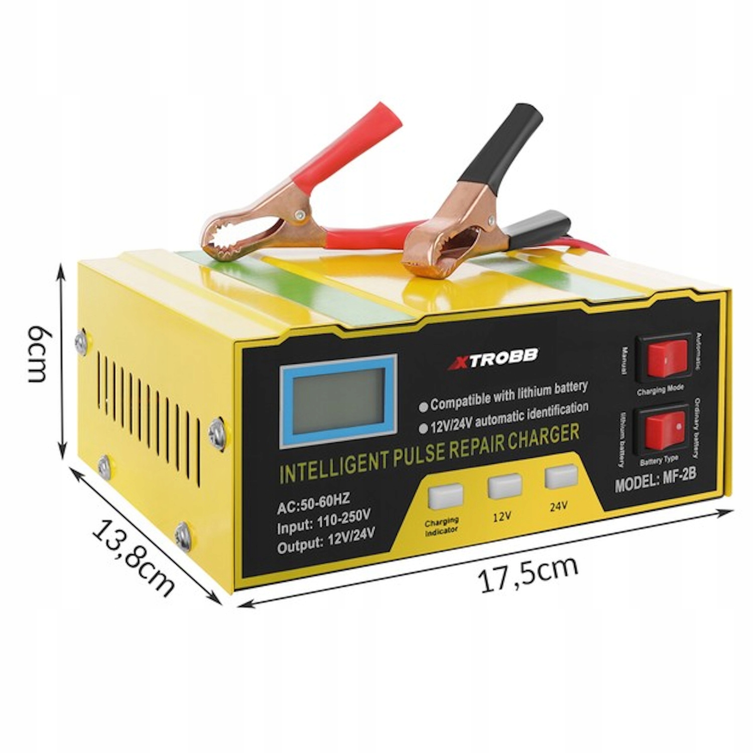 - SPECYFIKACJA – kolor: żółto-czarny; materiał: metal; napięcie wejściowe: 110-250V; napięcie wyjściowe: 12/24V; częstotliwość: 50-60 Hz; moc: 180W; prąd roboczy: 12V: 0-10A/ 24V: 8-14A; temperatura pracy: -20 ° C do + 50 °; ekran: LED ; funkcja ochrony: sześciokrotna ochrona bezpieczeństwa; funkcja naprawy impulsu: tak; wymiary (dł/szer/wys): 17,5/13,8/6cm; waga: 0,8kg