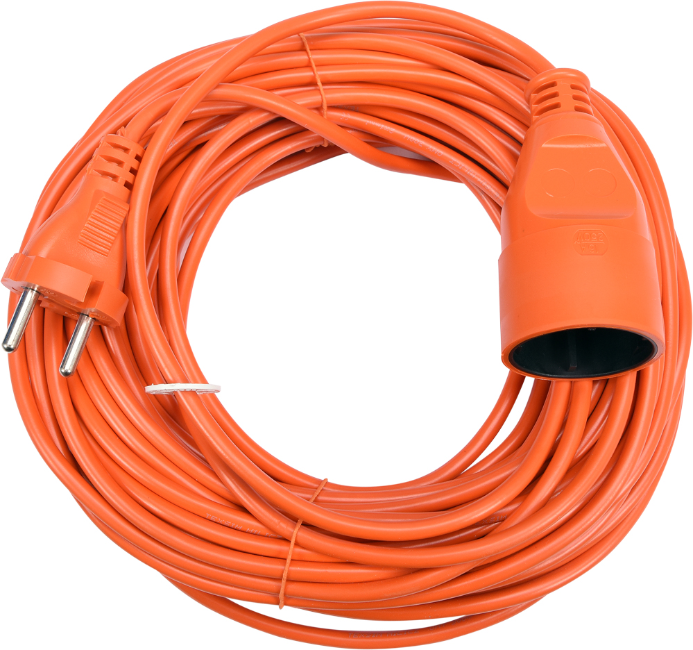 Przedłużacz jednogniazdowy o długości 20 m z grubą izolacją koloru pomarańczowego. Przekrój przewodu 2x1 mm². Klasa szczelności IP20. Przydatny w domu i w garażu.