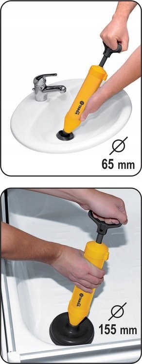 Pompa ssąco - tłocząca 55505 do udrażniania rur skutecznie usuwa zatory w kanalizacji wodno-ściekowej. Nie wymaga użycia środków chemicznych. Przyjazna środowisku. Wykonana z najwyższej jakości tworzywa. W opakowaniu dostępne końcówki o dwóch średnicach: 65mm i 155 mm. /