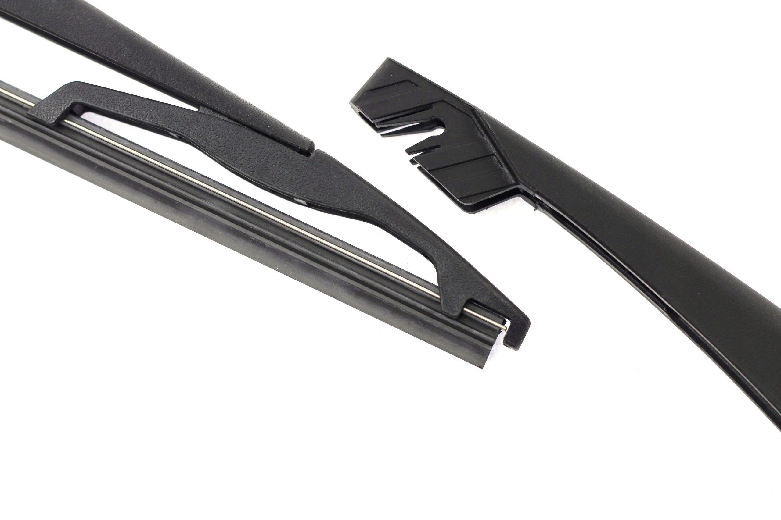 - Ramie wycieraczki posiada dedykowane mocowanie oraz odpowiednią długość pod konkretny model samochodu. Elementy z tworzywa wykonane są z polietylenu oraz poliwęglanu. Metalowe elementy wykonano z ocynkowanej stali