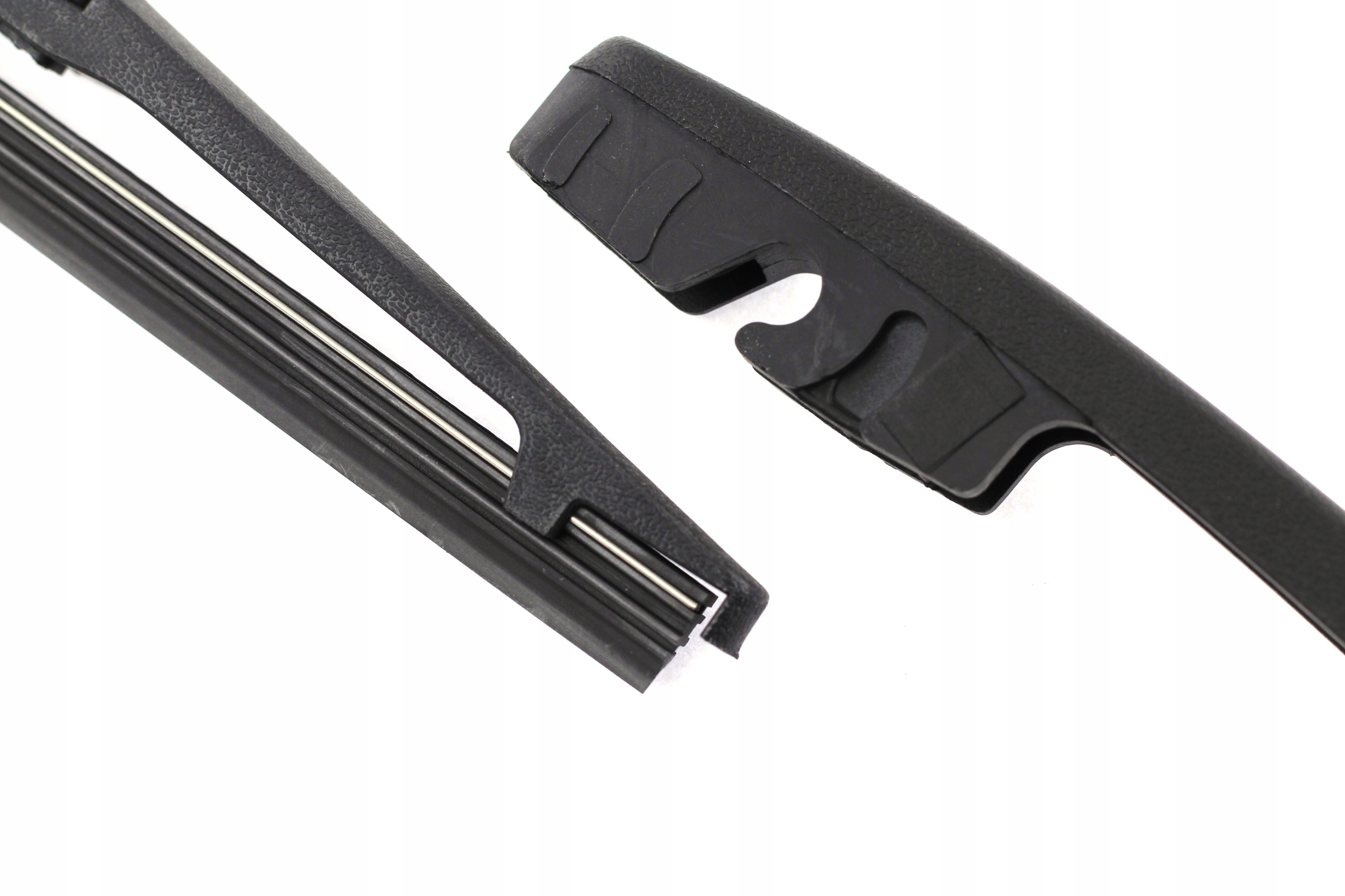 - Ramie wycieraczki posiada dedykowane mocowanie oraz odpowiednią długość pod konkretny model samochodu. Elementy z tworzywa wykonane są z polietylenu oraz poliwęglanu. Metalowe elementy wykonano z ocynkowanej stali