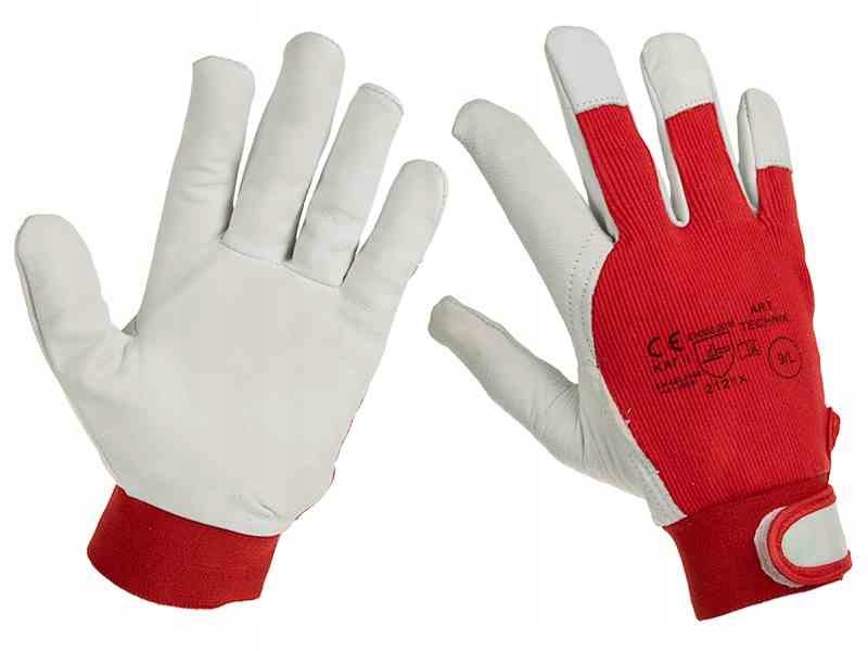 Rękawice całodłonicowe wykonane z miękkiej koziej skóry, która została połączona z elastyczną czarną tkaniną. Mankiet jest zapinany na rzep. W połączeniu ze ściągaczem daje możliwość właściwego dopasowania. Są wygodne i nie krępują ruchów. Zapewnią ochronę dłoni przed otarciami.