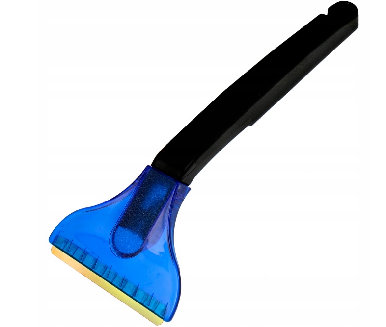 Długa skrobaczka z mosiężnym ostrzem. Dzięki zastosowaniu mosiądzu jako ostrza mamy pewność, iż szyby samochodu są bezpieczne i nie ulegną porysowaniu, gdyż mosiądz jest miększy od szyby samochodu.