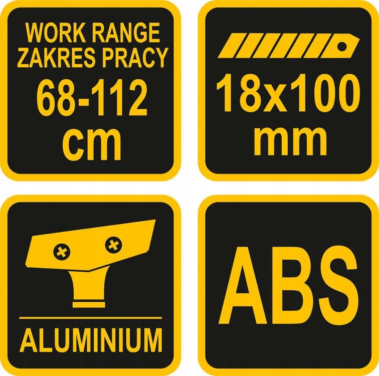 Szerokość ostrza wynosi 100 mm. Długość regulowana w zakresie od ok. 68 do 112 cm. Na trzonku zamontowano profilowane chwyty robocze z tworzywa sztucznego..Do skrobaka można zamontować ostrze łamane od noże 18 mm ..