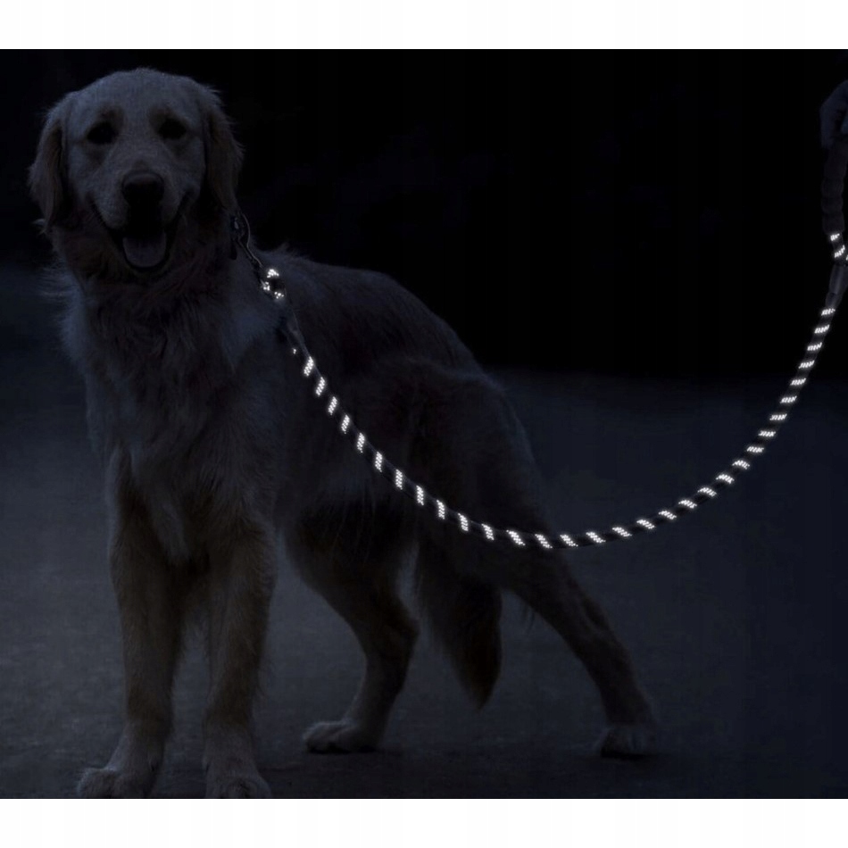 Warto dodać, że smycz posiada na całej długości paski odblaskowe. Takie rozwiązanie zwiększa widoczność po zmroku – gdy psa oświetlą światła jadącego samochodu, pasek odbije delikatnie światło, dając znak kierowcy, że ktoś znajduje się na drodze.