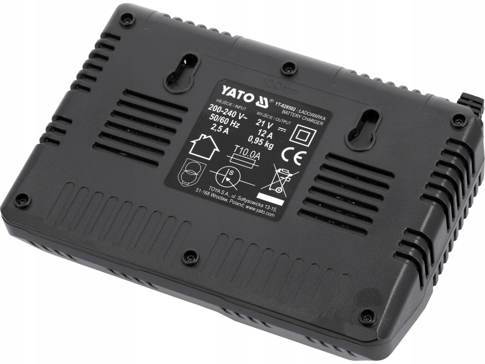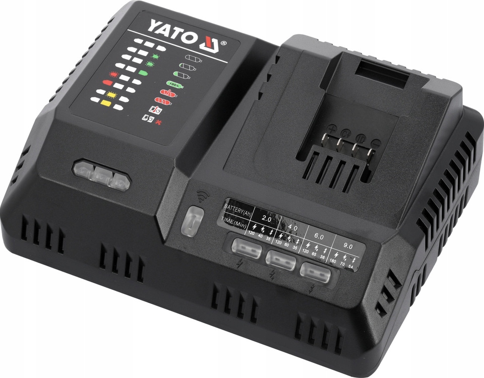 Najszybsza na rynku ładowarka do akumulatorów litowo-jonowych systemu 18 V YATO. Urządzenie wykrywa rodzaj akumulatora który został podłaczony i ładuje go maksymalnym bezpiecznym natężeniem prądu, które dany akumulator jest w stanie przyjąć, dozujac prąd w zakresie od 2A do 12A. Ładowarka wyposażona jest w wentylator, który chłodzi ogniwa podczas ładowania.