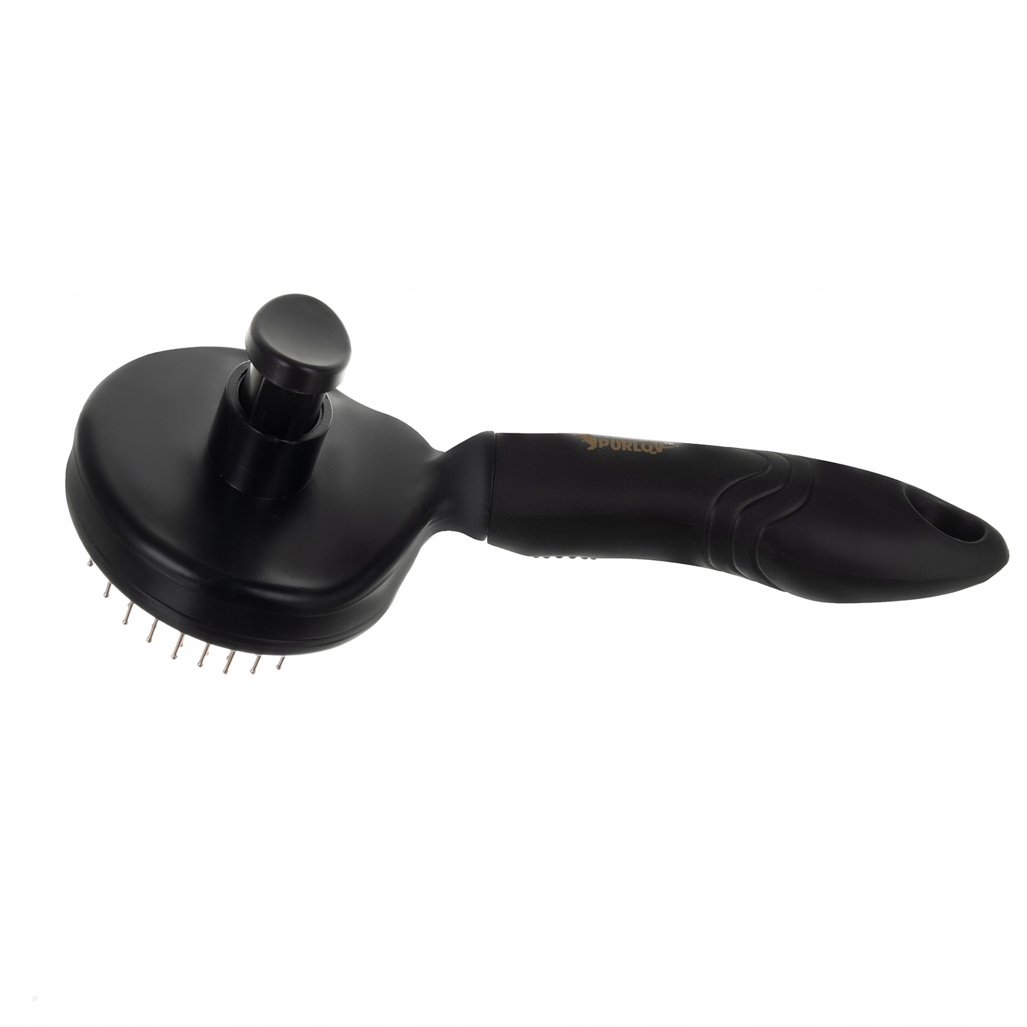 - SAMOCZYSZCZĄCA – szczotka jest samoczyszcząca, dzięki wygodnemu przyciskowi skutecznie i szybko usuwa sierść zalegającą na igłach. Jest to bardzo wygodne rozwiązanie podczas czesania zwierzęcia, ponieważ nie musisz wyciągać sierści przy czesaniu, tylko użyć wygodnego przycisku, a sierść sama podejdzie do góry.