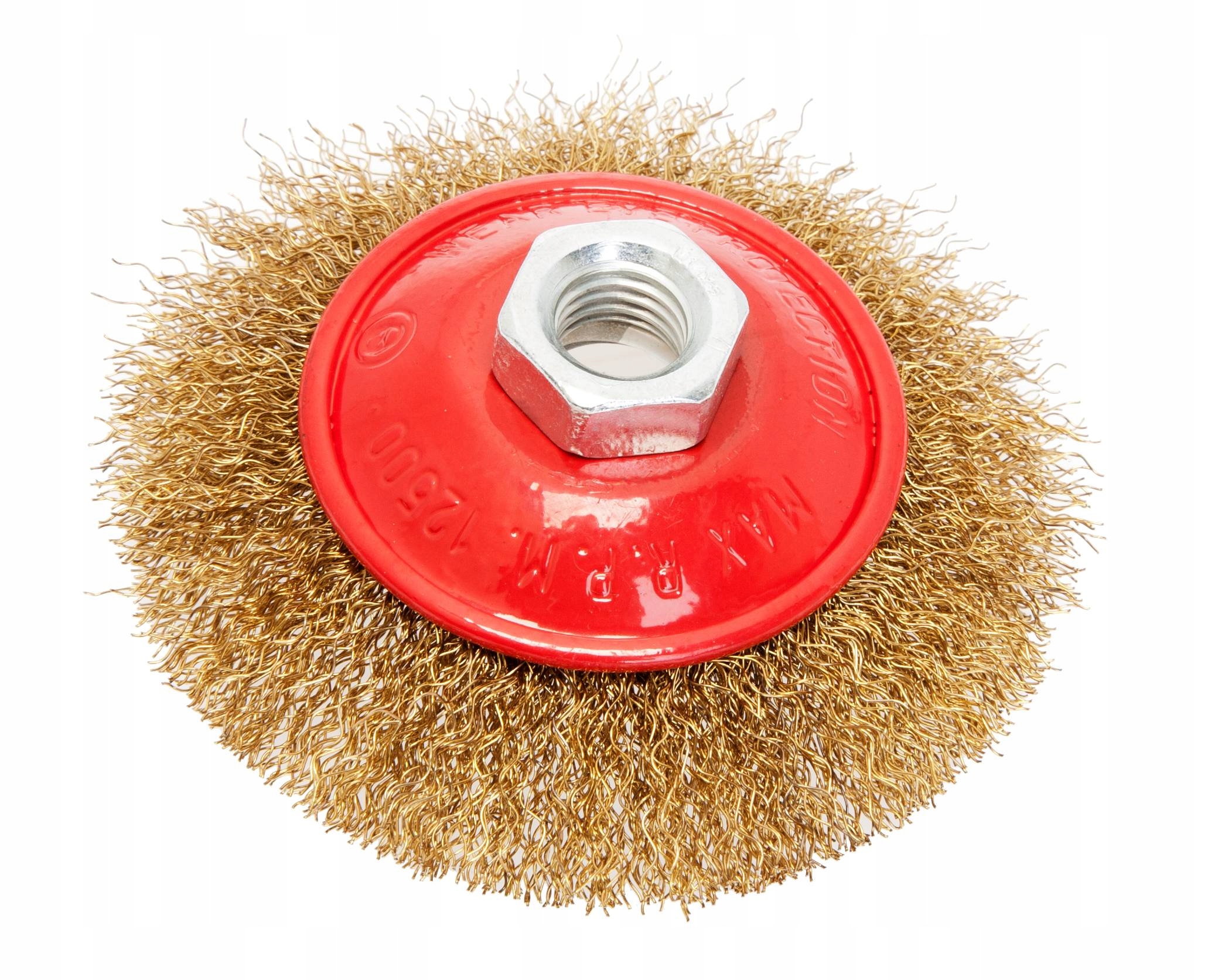 Szczotka tarczowa ze stalowym drutem technicznym mosiądzowanym i karbowanym, średnica fi 100mm.