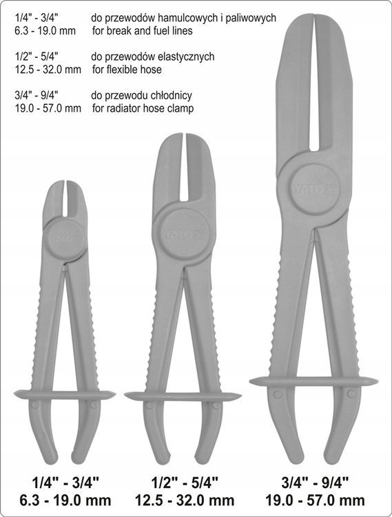 - Niezbędny zestaw w każdym warsztacie przy tamowaniu przewodów: chłodniczych,elastycznych przewodów hamulcowych, przewodów paliwowych oraz wodnych.