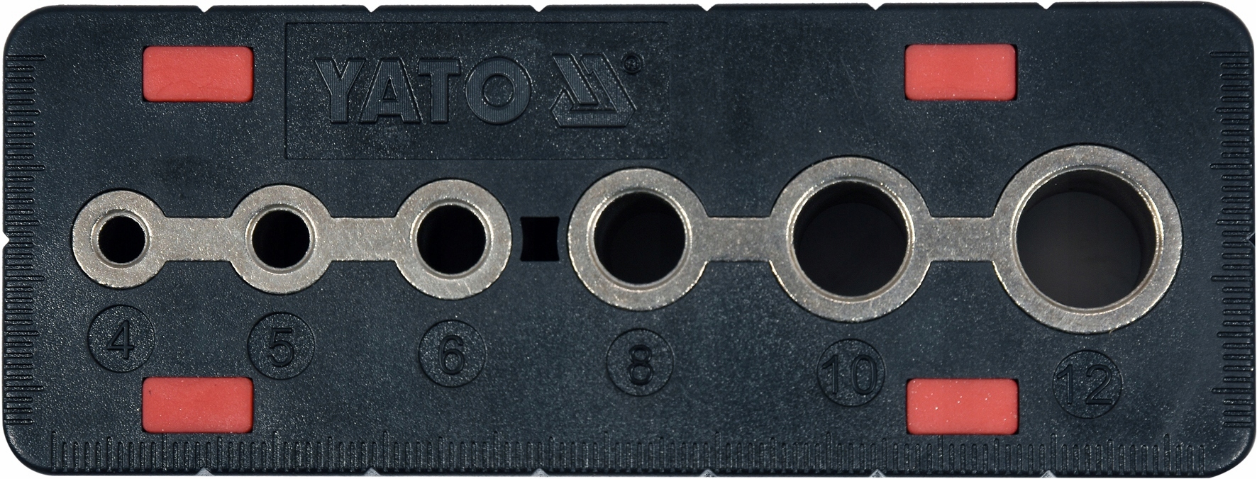 • 5 otworów wyposażonych w prowadnice ze stali węglowej dla wierteł o średnicy 4, 5, 6, 8, 10 i 12 mm