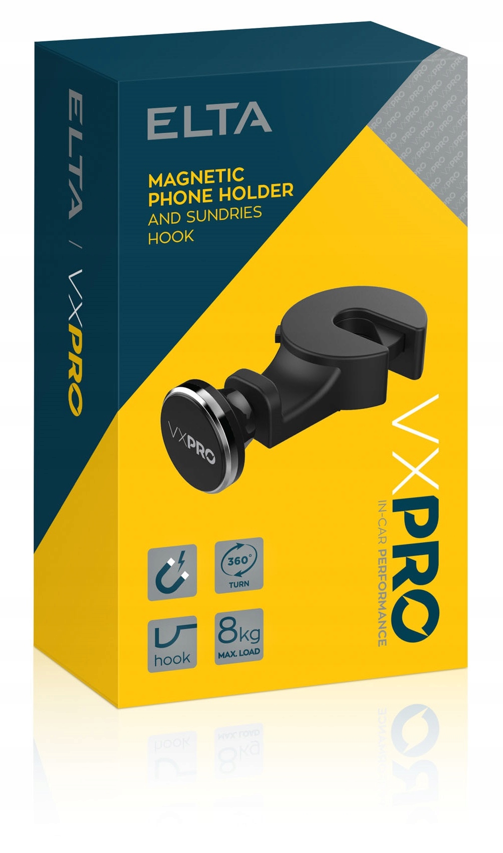 Magnetyczny uchwyt na zagłówek ELTA VXPRO- to uniwersalny uchwyt magnetyczny do samochodu, który przystosowany jest do większości modeli telefonów oraz tabletów. Uchwyt montowany jest do zagłówka fotela dzięki czemu pozwala na sprawne korzystanie z wyżej wymienionych urządzeń przez pasażerów siedzących na tylnich siedzeniach. Posiada on obrotowe ramię z głowicą 360 stopni co zapewnia wygodę użytkowania. Silny zacisk uniemożliwia przemieszczanie się uchwytu podczas jazdy.