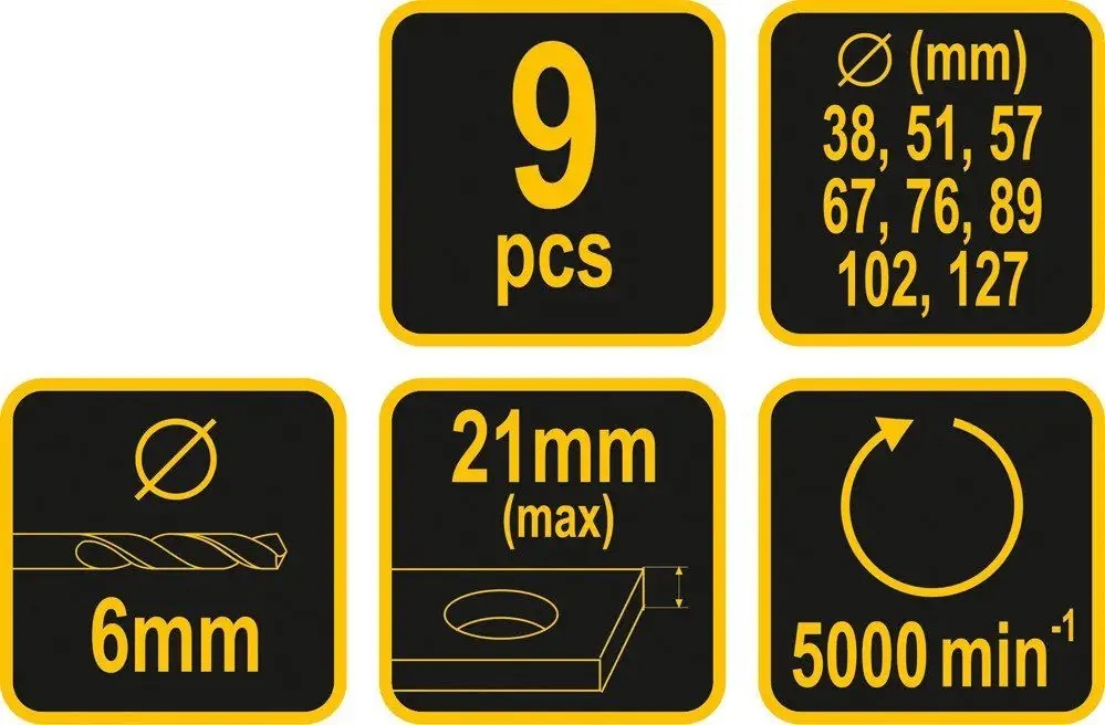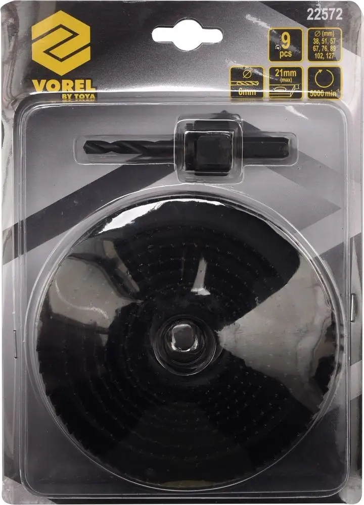 VOREL 22572 WYCINARKA DO OTWORÓW W DREWNIE 38-127MM, KPL.9SZT.