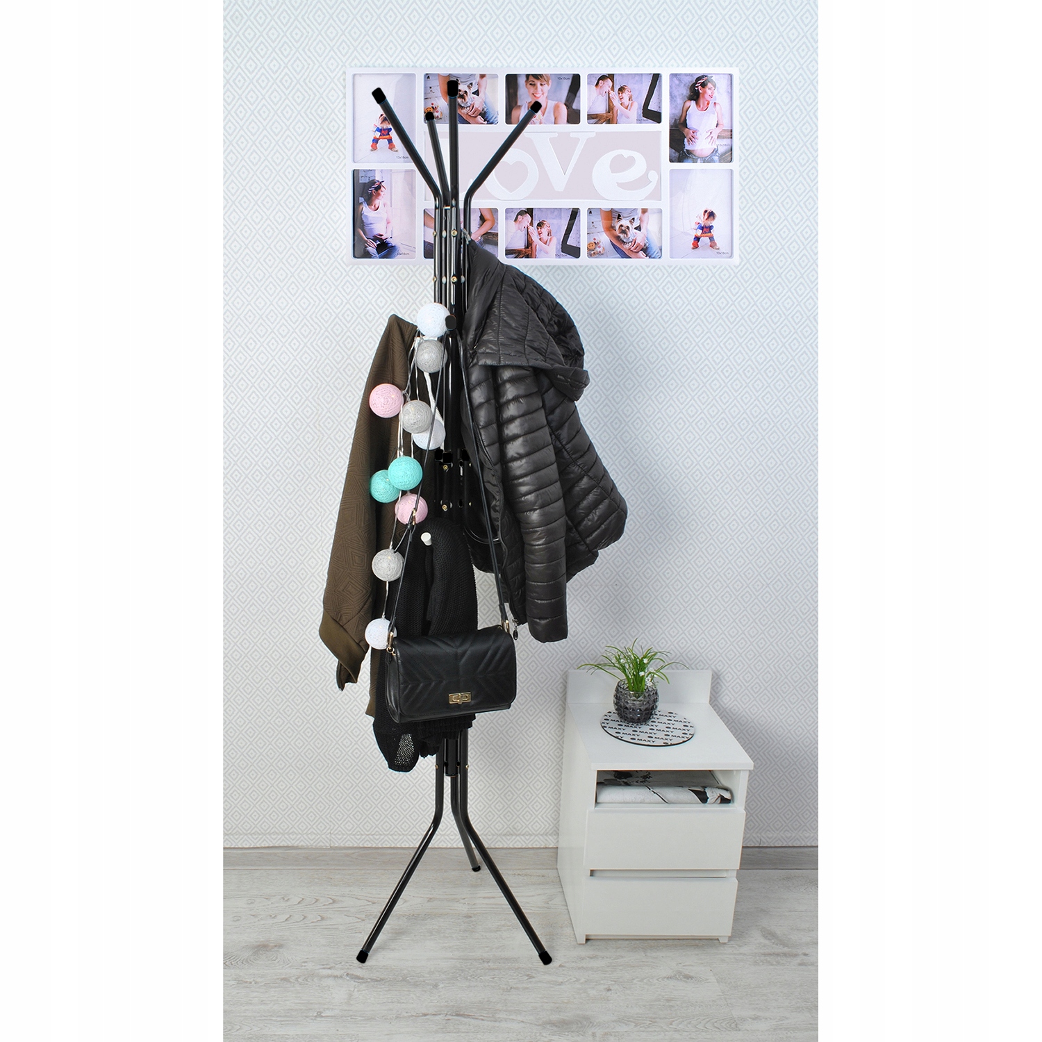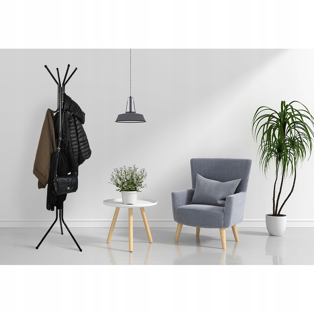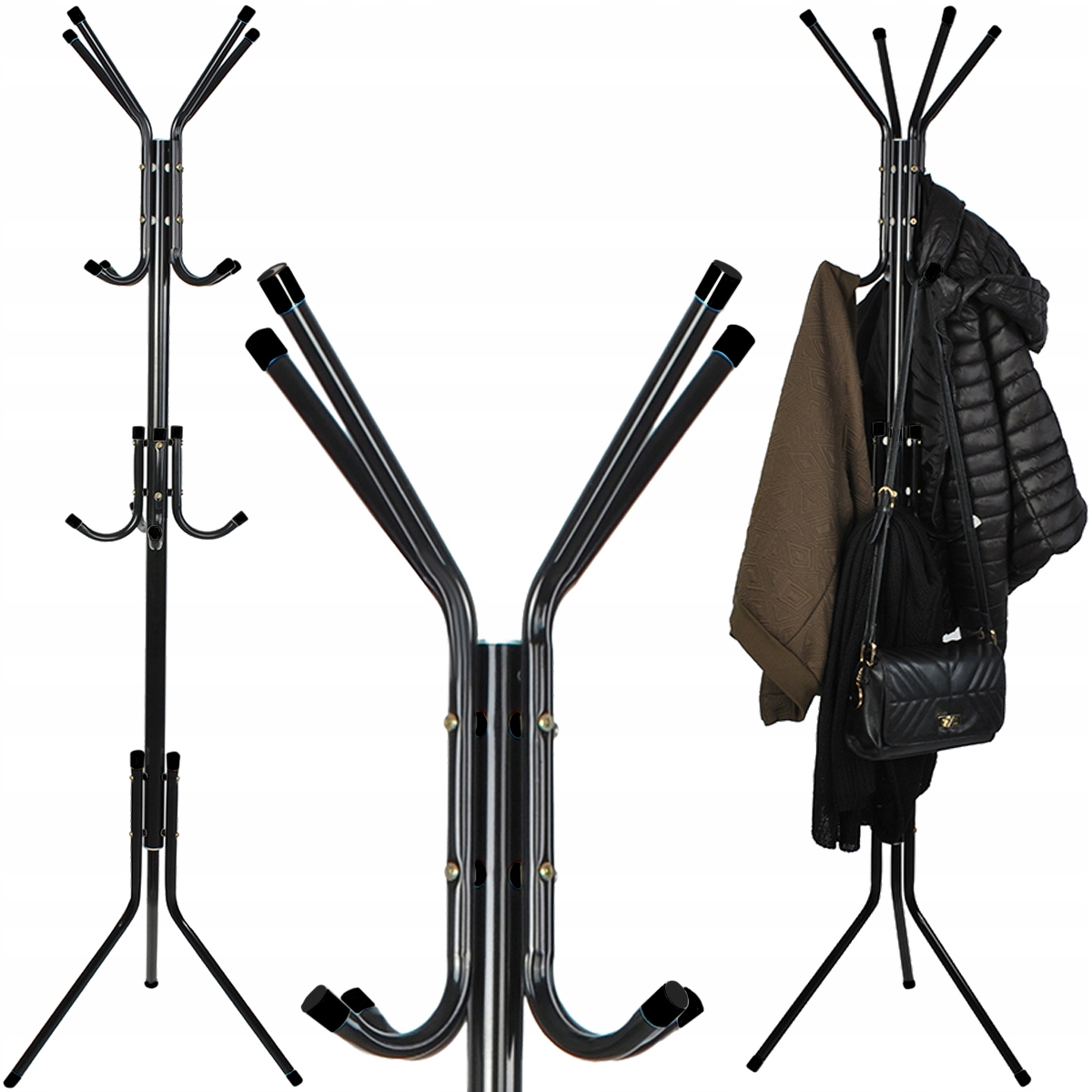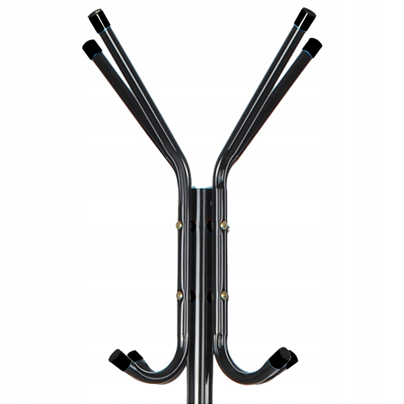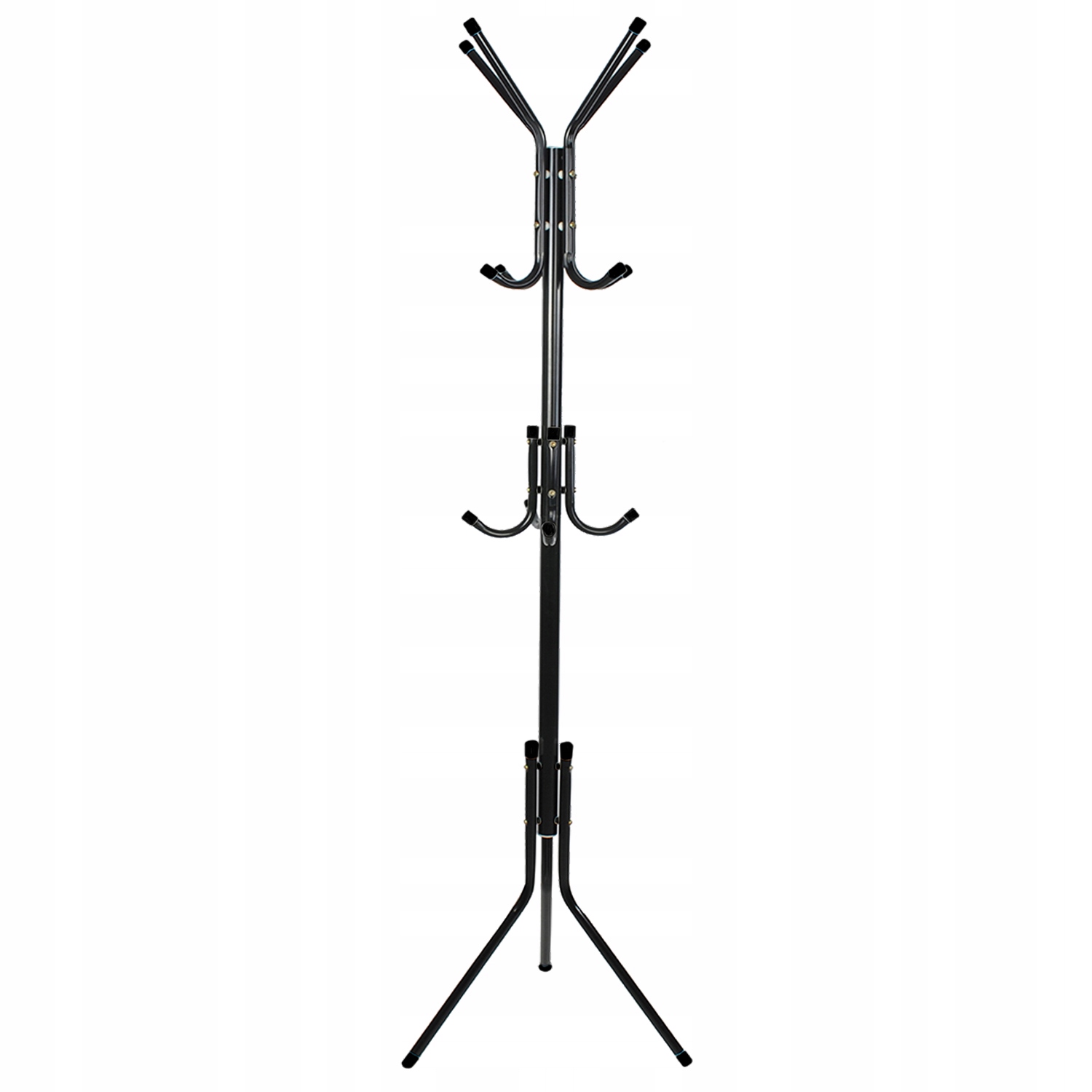 - SPECYFIKACJA - kolor: czarny; materiał: metal; wymiary: 42 x 42 x 175 cm; wysokość poziomu haków (niski/średni/wysoki): 93,5/133,5/175cm; waga wieszaka: 1,556 kg; waga z opakowaniem: 1,623 kg.