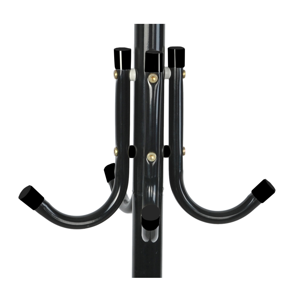 - DUŻA LICZBA HACZYKÓW Z OSŁONKAMI – aż 12 haczyków umożliwia zawieszenie dużej ilości odzieży, nakryć głowy czy też parasoli. Plastikowe osłony zabezpieczają przed uszkodzeniem odzieży oraz chronią powierzchnię, na której postawiony jest wieszak.