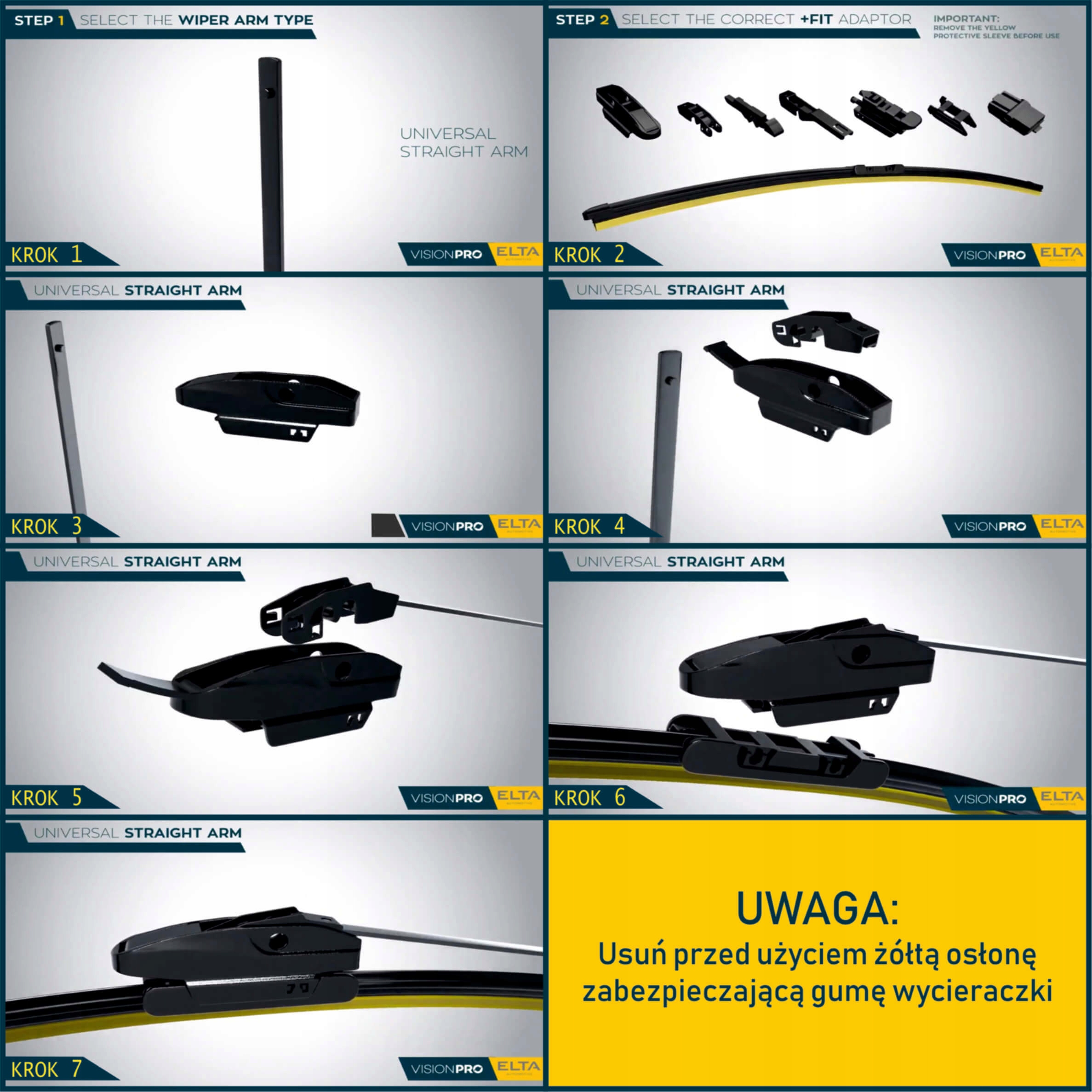- Dzięki zastosowaniu nowego systemu adapterów, wycieraczki pasują do jednastu najbardziej popularnych rodzajów ramion wycieraczek