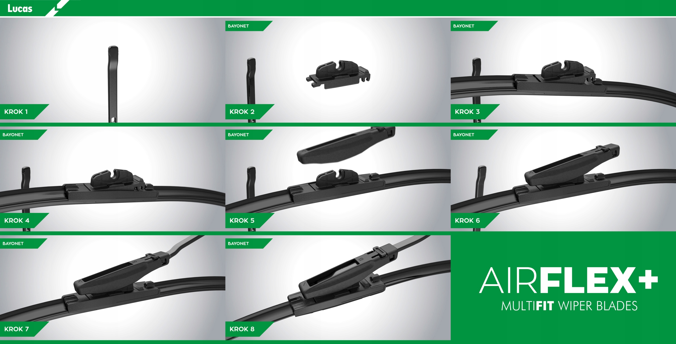 - Dzięki zastosowaniu nowego systemu adapterów, wycieraczki pasują do jednastu najbardziej popularnych rodzajów ramion wycieraczek