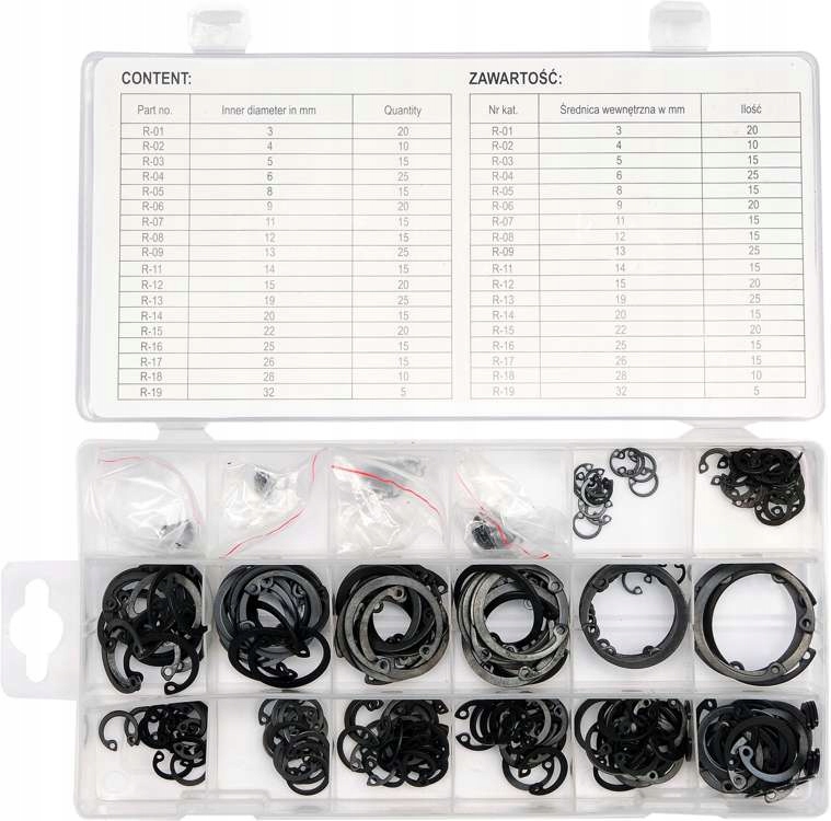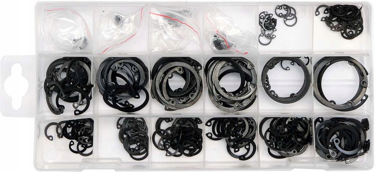 Profesjonalny zestaw 300 pierścieni Segera wewnętrznych. Zestaw zawiera mix 18 różnych rozmiarów. Całość w solidnym organizerze. Niezastąpiony w warsztacie samochodowym, rolnictwie czy przemyśle.