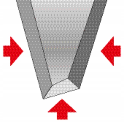 Piła płatnica z trójstronnie ostrzonymi zębami, rozmieszczonymi w grupach po 9 na cal. Przerwy w brzeszczocie ułatwiają usuwanie trocin. Czarna powłoka teflonowa PTFE zmniejsza tarcie. Zamknięta rękojeść z podgumowanymi elementami ułatwia pewne trzymanie piły.