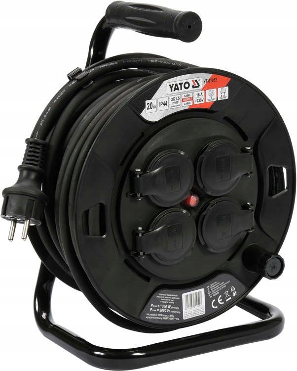 Wysokiej klasy przedłużacz bębnowy o długości 20m z 4 gniazdami. Przewód wykonany jest z 3 żył miedzianych o przekroju 1,5mm² każdy. Taki przekrój przewodu umożliwia podłączenie do tych przedłużaczy jednocześnie 4 urządzeń, co jest szczególnie przydatne na budowie, w warsztacie czy zakładzie produkcyjnym. Przewody pokryte są izolacją wykonaną z gumy naturalnej H05RR-F, która charakteryzuje się wysoką odpornością na uszkodzenia mechaniczne, czynniki atmosferyczne, substancje chemiczne (oleje chłodząco-smarujące, benzynę, czy alkohole etylowe, metylowe). Taka izolacja zapewnia napięcie znamionowe 300V / 500V.