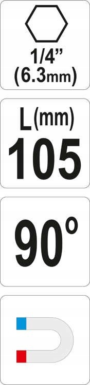 Wkrętak kątowy do końcówek 1/4 marki YATO YT-04630. Niezastąpiony w przestrzeniach z ograniczonym polem manewru, oraz w miejscach niedostępnych dla wkrętaków akumulatorowych i elektrycznych. Dwustronne gniazdo na końcówkę 1/4. Pokryty tworzywem zapewniającym pewny chwyt.