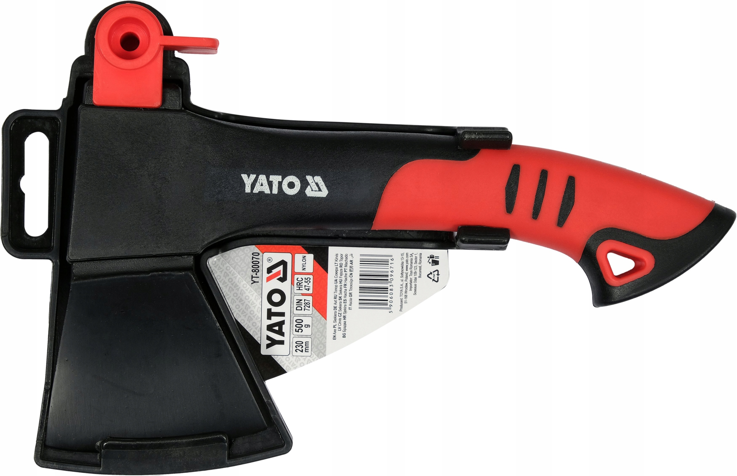 Siekiera z nylonową rękojeścią pokrytą gumowanym TPR zwiększającym pewność chwytu.