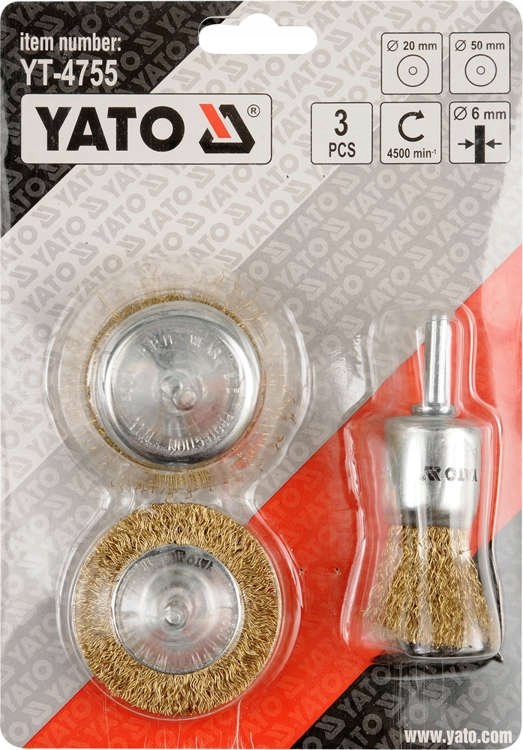 - Przedmiot: Zestaw szczotek drucianych z trzpieniem firmy YATO