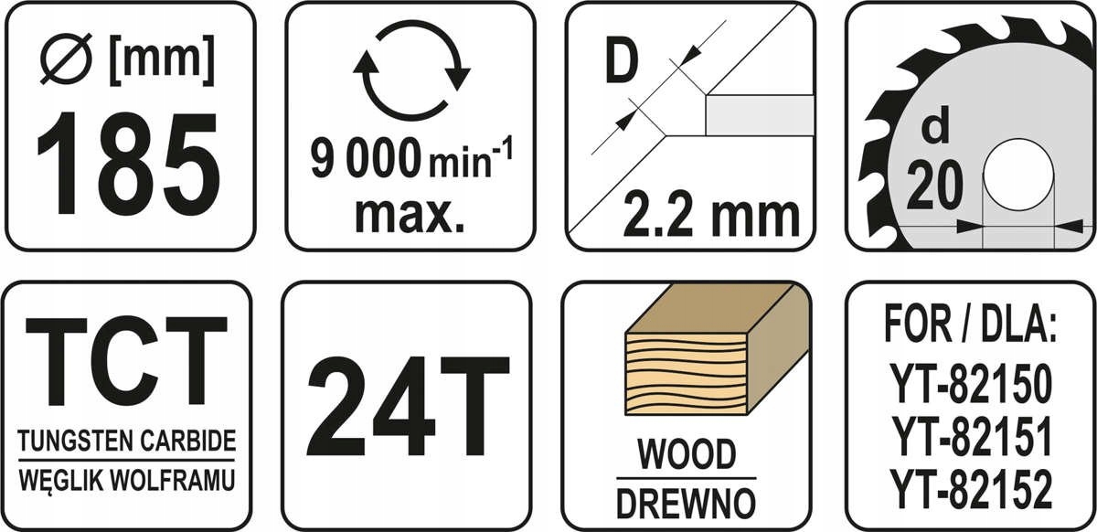 YATO TARCZA WIDIOWA DO DREWNA 185 x 20 mm 24T