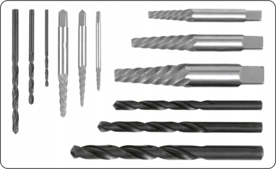 Zestaw wykrętaków do urwanych, zniszczonych śrub, szpilek.