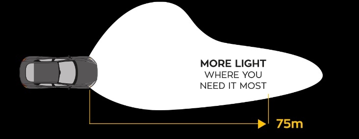 - zwiększona widoczność na drodze do 75m